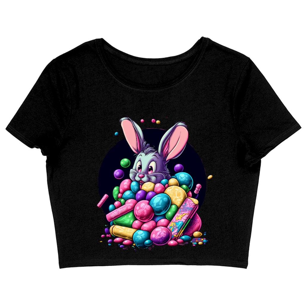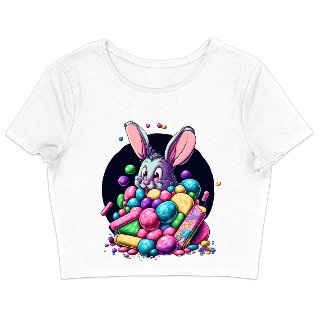 Kawaii Bunny Women’s Cropped T-Shirt – Cute Animal Crop Top – Candy Themed Crop Tee Shirt