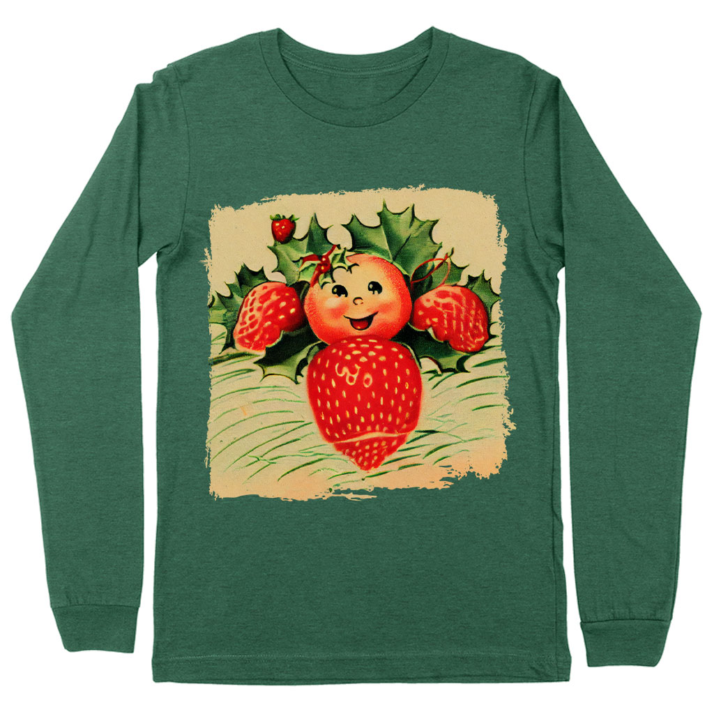 Kawaii Strawberry Long Sleeve T-Shirt - Cute Print T-Shirt - Themed Long Sleeve Tee Shirt Clothing T-Shirts Color : Black|Heather Forest|White