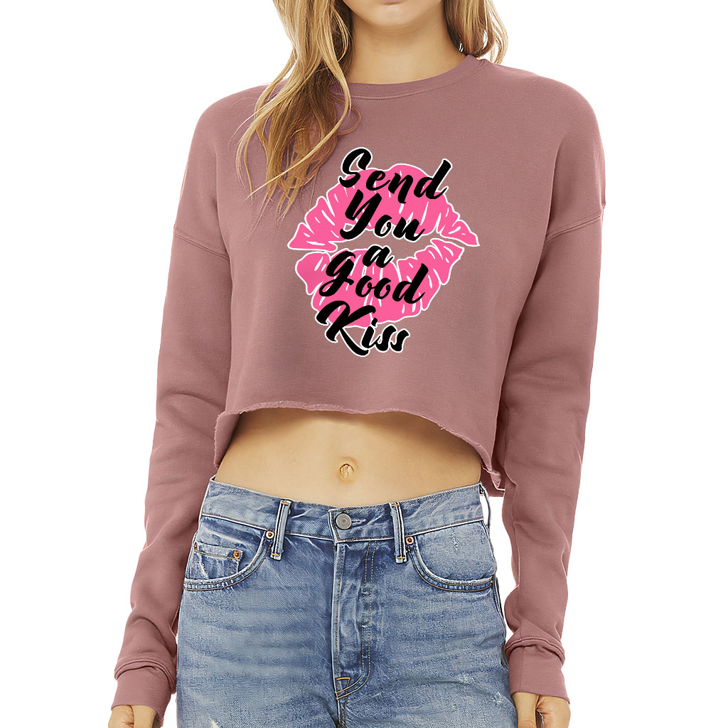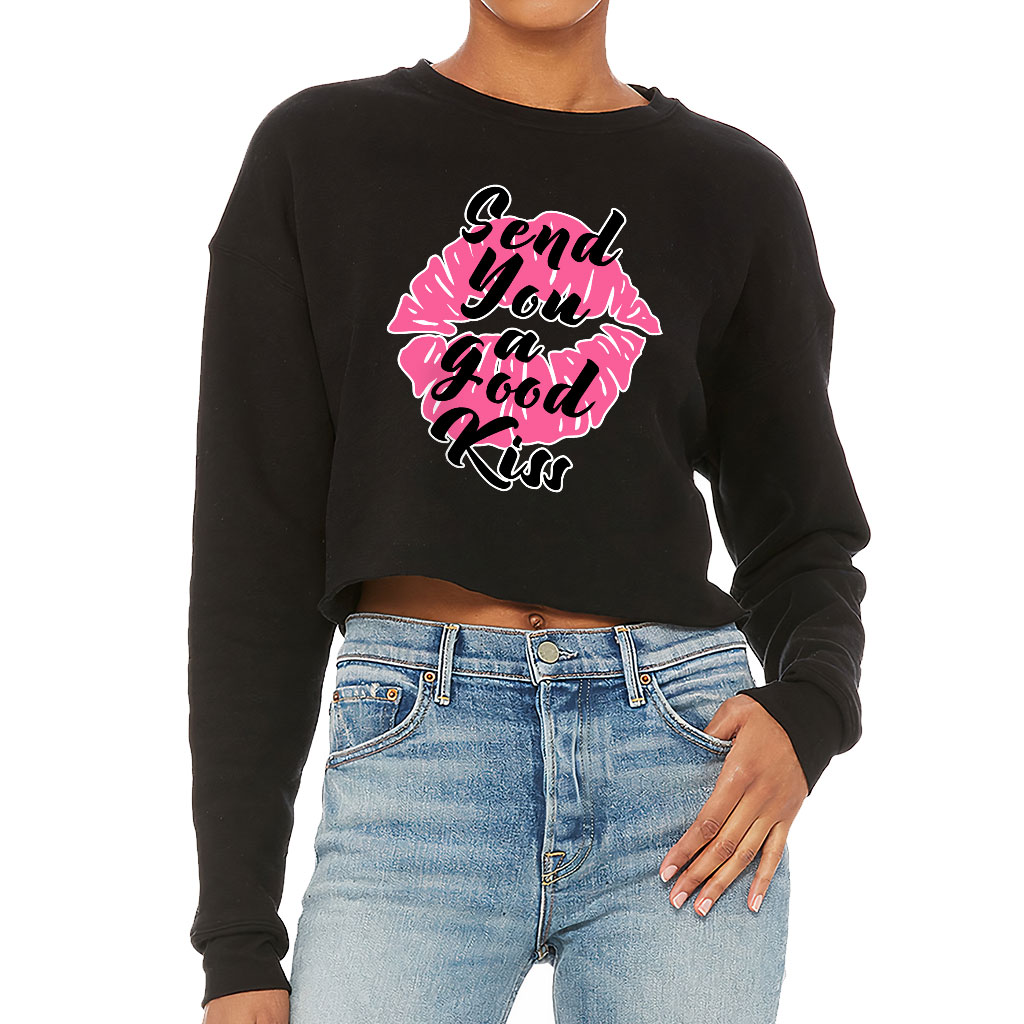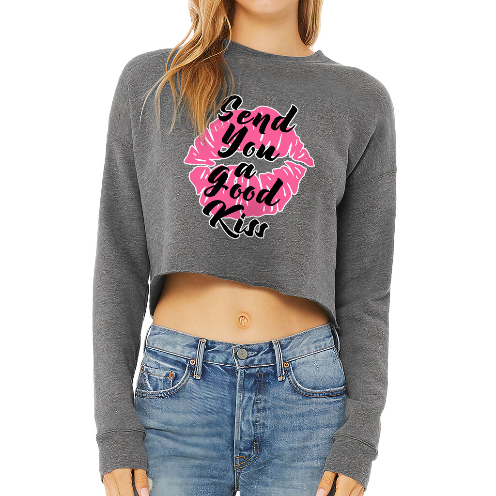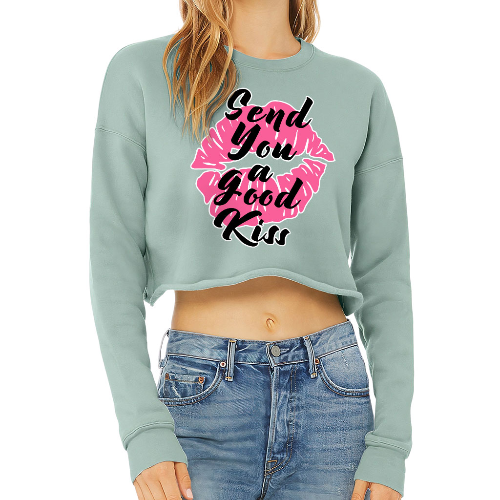 Kiss Lips Cropped Sweatshirt – Cute Women’s Sweatshirt – Graphic Crop Crew Sweatshirt