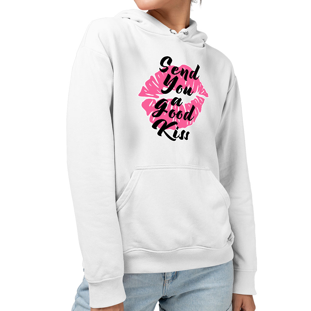 Kiss Lips Sponge Fleece Hoodie – Cute Hoodie – Graphic Hooded Sweatshirt