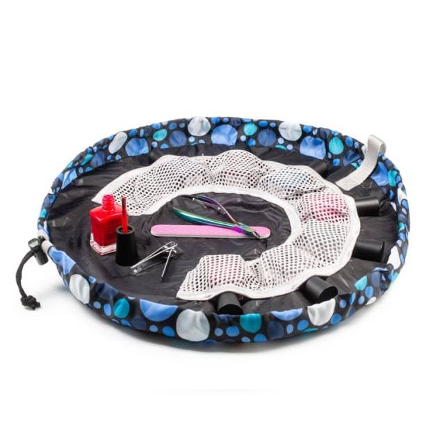 I was tired of fumbling around in my cosmetics and nail polish case and saw this. I was skeptical, but...WOW! On my recent two week trip across Europe, with constant laying out and packing up, this item was wonderful. I could find what I wanted quickly, right away. Packing up was just a matter of pulling the drawstring. At first I wasn’t sure about changing to this bag, but now I could not do without it.