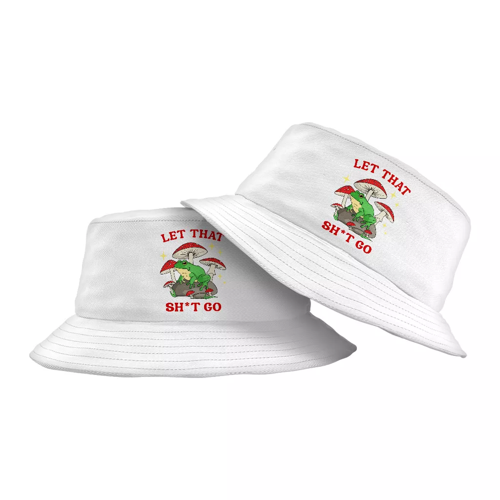 Let That Go Bucket Hat – Frog Mushroom Trendy Hat – Funny Quote Sun Hats