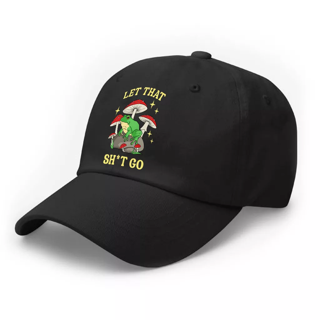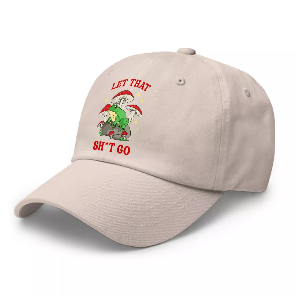 Let That Go Classic Dad Cap – Funny Quote Unisex Baseball Cap – Frog Mushroom Premium Dad Cap