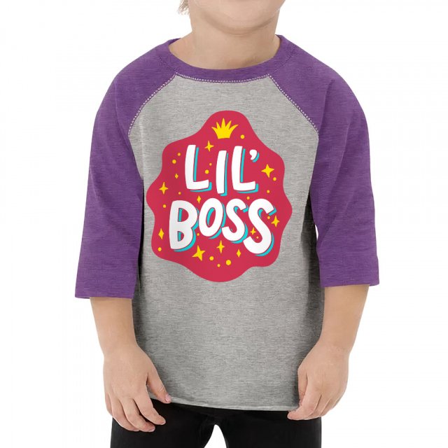 Little Boss Toddler Baseball T-Shirt – Cool 3/4 Sleeve T-Shirt – Trendy Kids’ Baseball Tee
