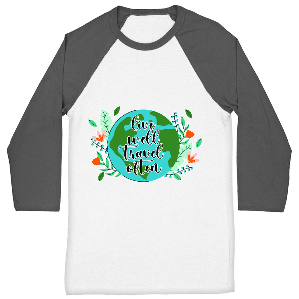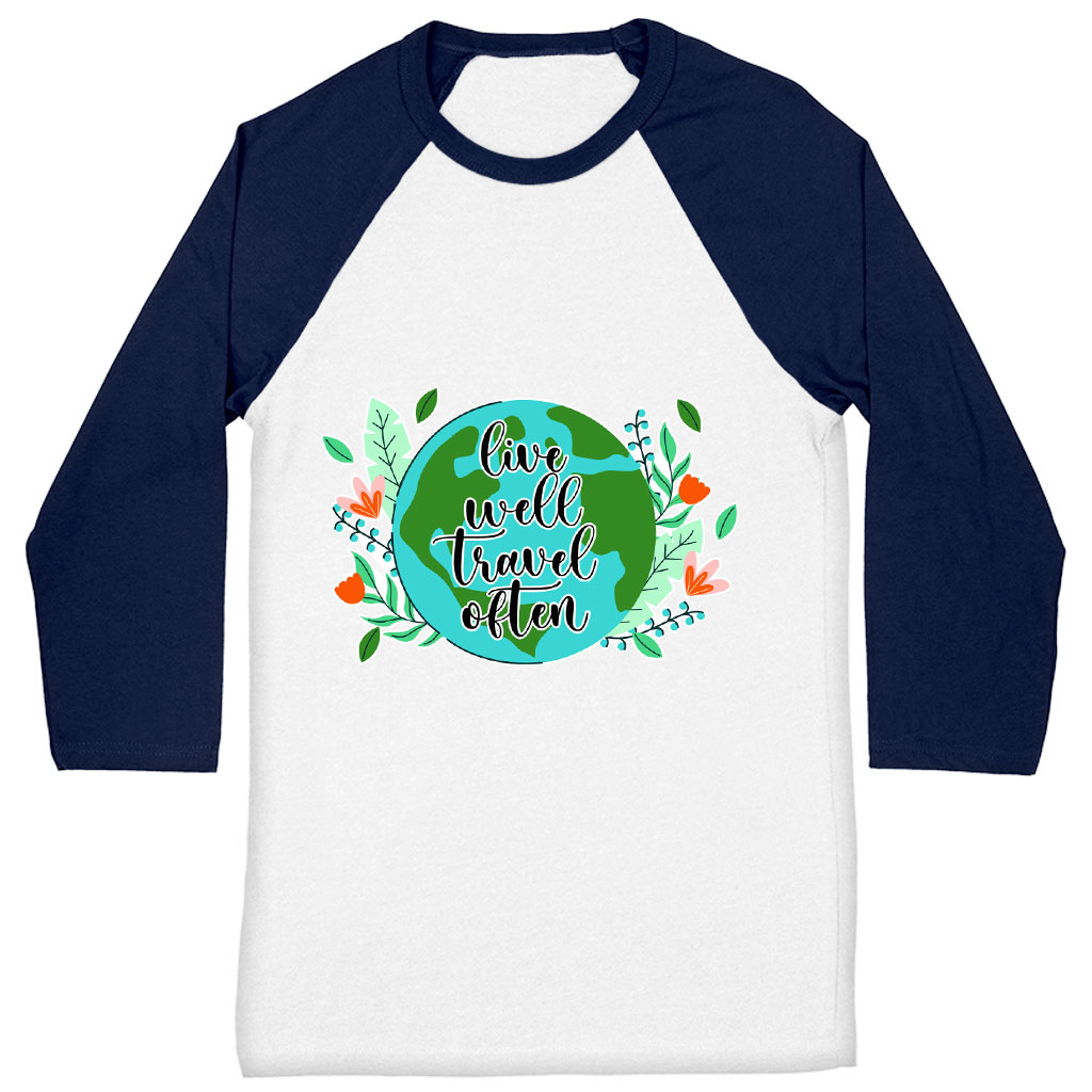 Live Well Travel Often Baseball T-Shirt – Graphic T-Shirt – Unique Baseball Tee