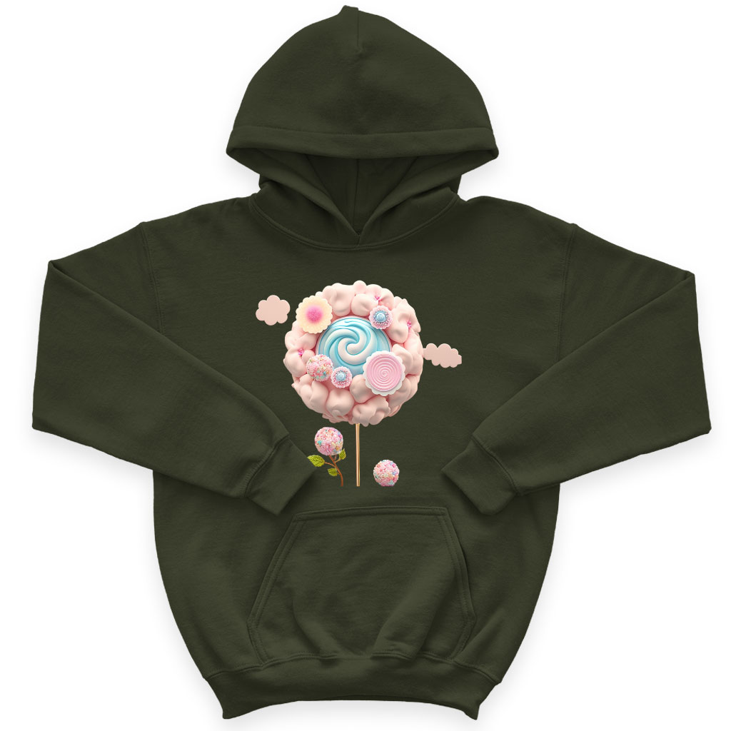 Lolly Pop Kids' Sponge Fleece Hoodie - Sweet Kids' Hoodie - Kawaii Hoodie for Kids Clothing Hoodies Kids' Clothing Color : Athletic Heather|Black|Military Green