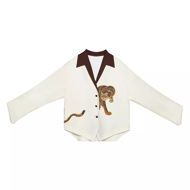 Embrace effortless style and bold design with this Spring and Autumn Loose Fit Japanese Style Tiger Print Blouse. Featuring an eye-catching color block design and a striking tiger print, this blouse effortlessly blends modern style with traditional influences. Whether you’re dressing up for a casual outing or adding a unique touch to your everyday wardrobe, this piece will make a statement. The loose, comfortable fit ensures all-day ease, while the original design adds a layer of sophistication to your look. Perfect for the transitional seasons, this blouse is a must-have addition to your collection.