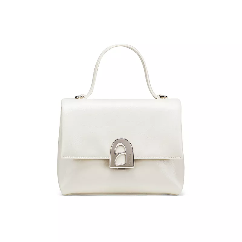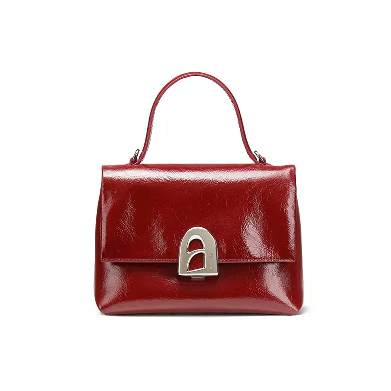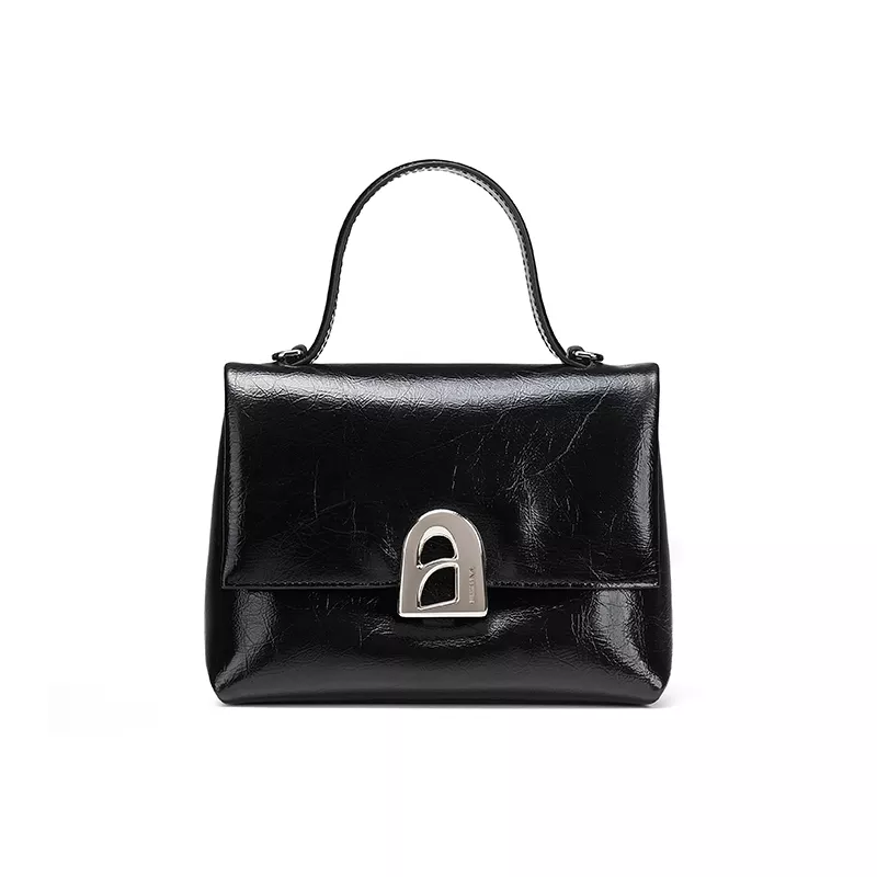 The unique A-line door design adds a distinct look, making it a statement piece that stands out without being overwhelming. The interior compartments and secure hasp closure ensure your belongings are well-organized and safe, while the soft leather material gives the bag a sophisticated yet comfortable feel.
