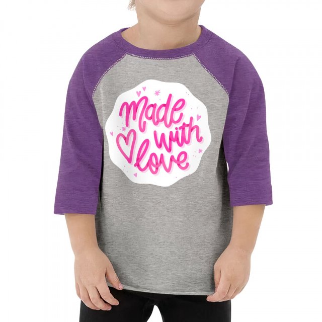 Made With Love Toddler Baseball T-Shirt – Kawaii 3/4 Sleeve T-Shirt – Best Design Kids’ Baseball Tee