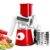 • Three interchangeable stainless steel blades for slicing, fine shredding, and coarse shredding.