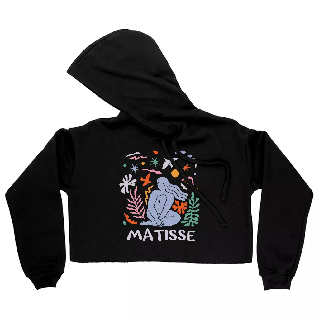 Matisse Women’s Cropped Hoodie – Abstract Hooded Sweatshirt – Artsy Super Crop Top Hoodies