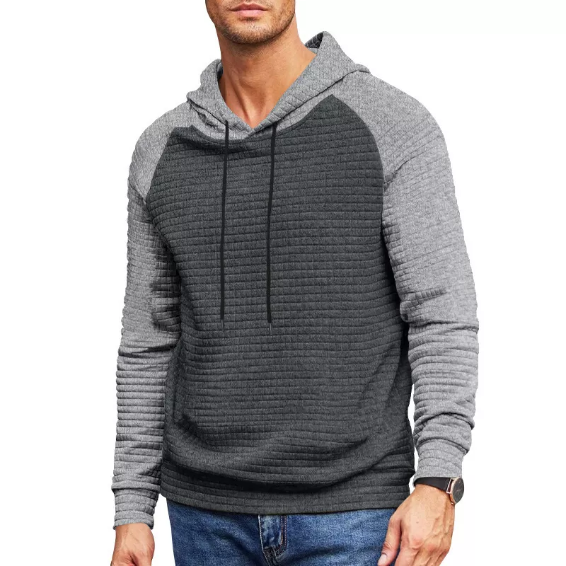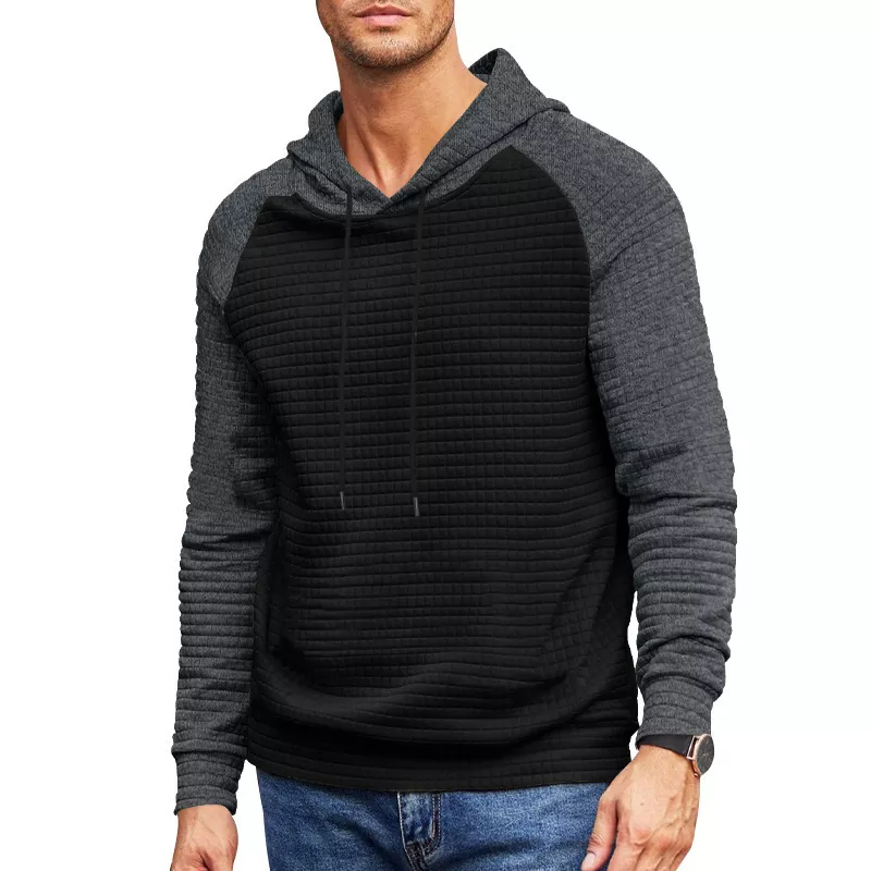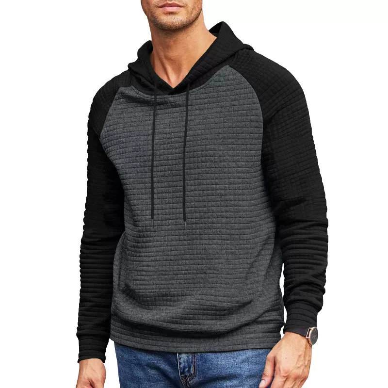 Men’s Contrast Patchwork Hoodie – Casual Waffle Knit Sweatshirt for Spring & Fall