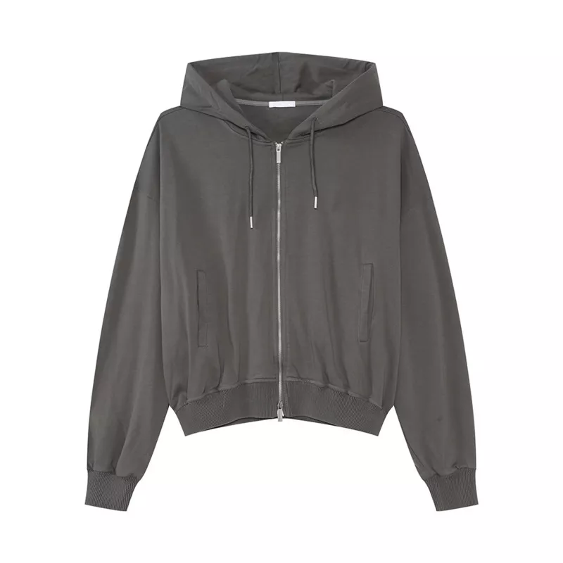 Men’s Korean Style Loose Fit Hoodie – Two-Way Zipper, Solid Color, Trendy & Comfortable