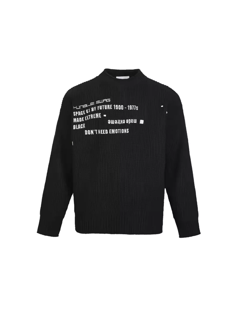Men’s Letter-Embroidered Knitted Pullover Sweater