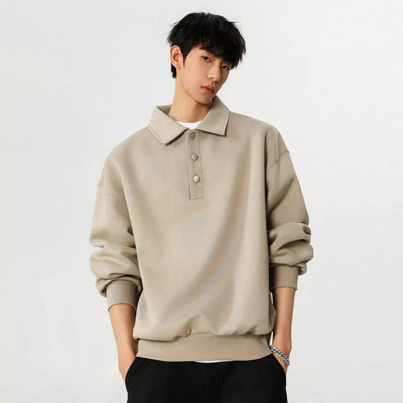 What sets this sweatshirt apart is its ability to combine casual comfort with a stylish twist. The simple design, paired with the unique collar and button detailing, allows you to express your personality in a subtle yet fashionable way. Whether you wear it with jeans or casual trousers, it’s sure to become a go-to piece in your wardrobe for everyday wear.
