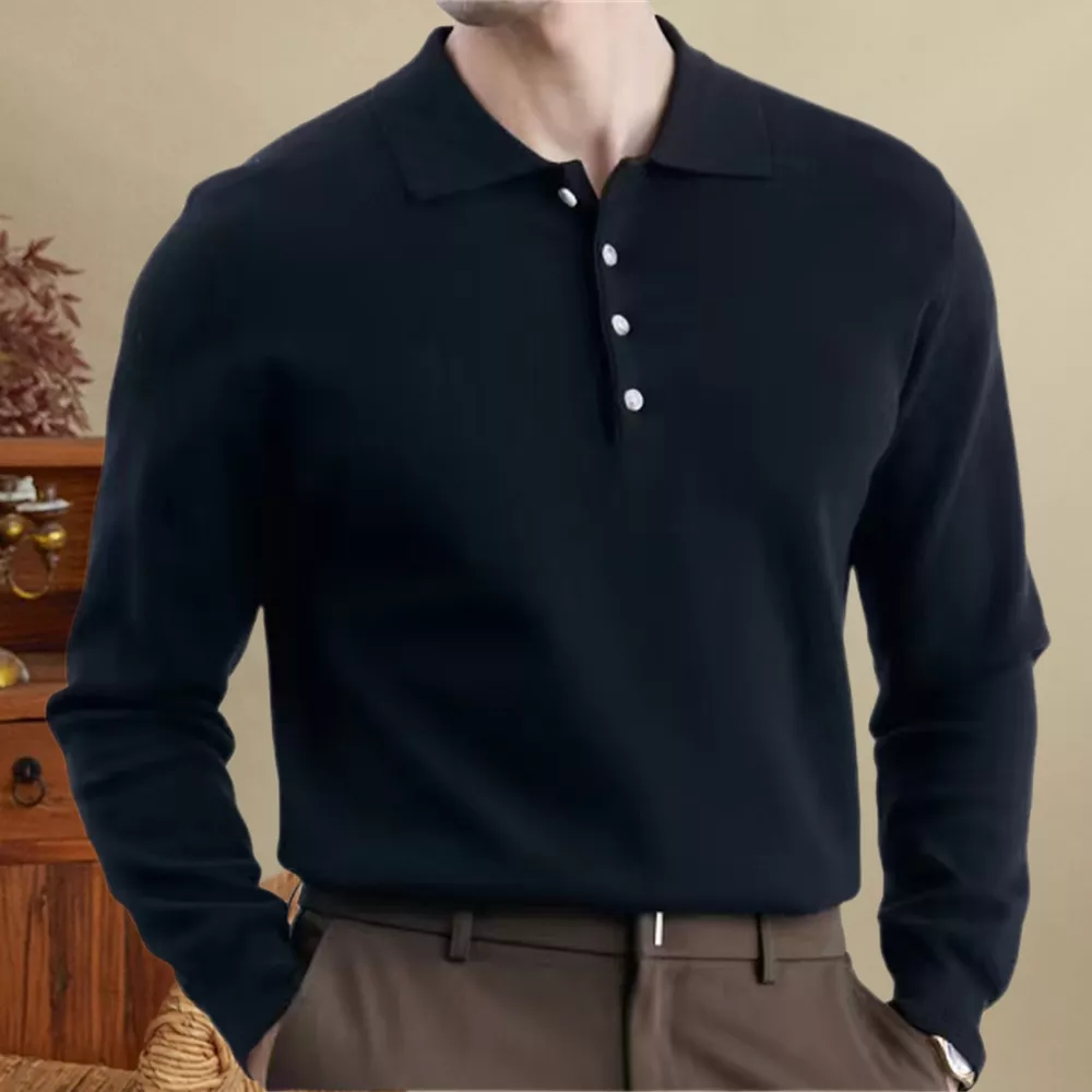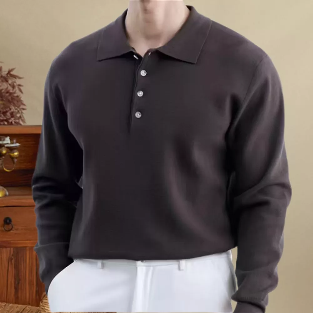 Men’s Solid Color Knit Sweater – Classic British Style for Fall & Winter