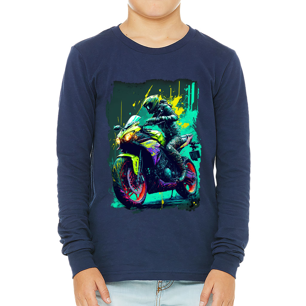 Motorbike Kids’ Long Sleeve T-Shirt – Biker T-Shirt – Cool Long Sleeve Tee