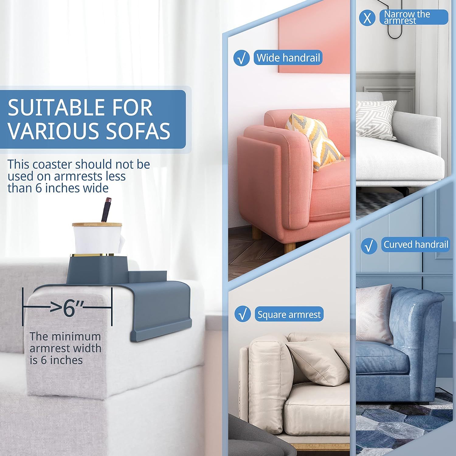• Compatible with most sofa armrests (note: not suitable for armrests less than 15cm/5.91inch in width)