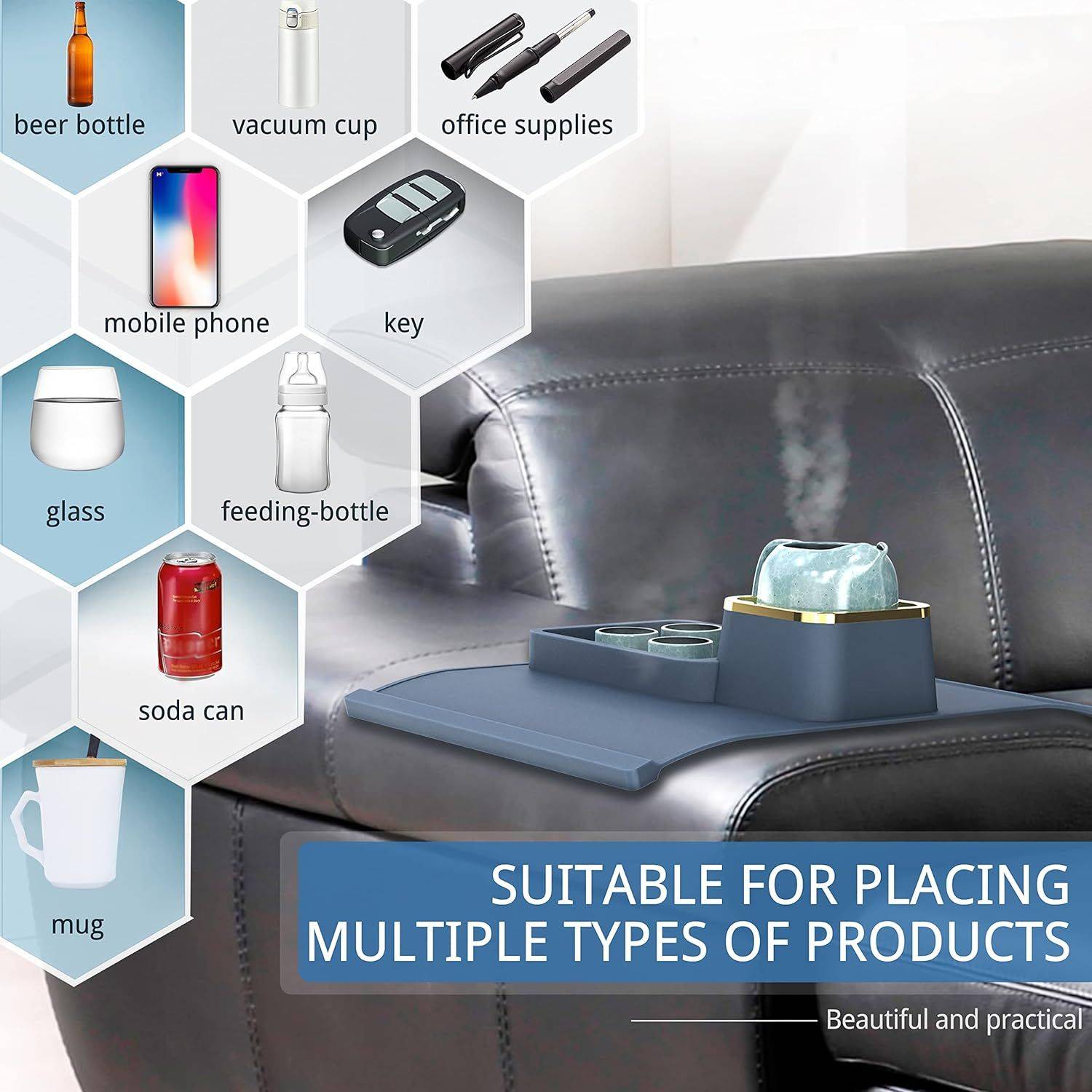 What makes this product special is its ability to blend functionality with style. It’s not just about holding your drink; it’s about enhancing your living experience. Use it to hold snacks during a game night, keep your remote control handy for quick access, or even as a safe spot for your phone while you unwind. It’s the little conveniences that make a big difference, and our sofa armrest organizer is here to prove it.