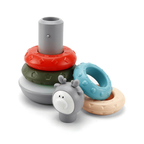 Stacking toys boost fine motor skills and teach the kid about the concepts of size, height, order, and balance. Textured parts of the toy are even more exciting and fun to touch!