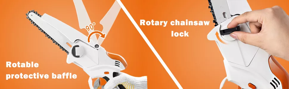 Safety as a Priority: Your safety is our top concern. This cordless chainsaw features a triple safety mechanism: a security lock to prevent accidental activation, a blade guard for added protection, and a handle guard that separates your hand from the chain, ensuring complete safety during use.