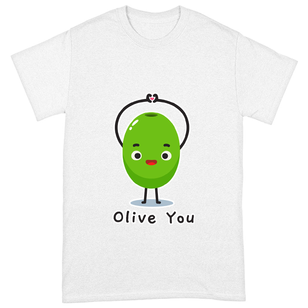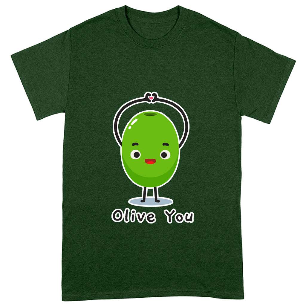 Olive You Heavy Cotton T-Shirt - Heart Print Tee Shirt - Graphic T-Shirt Clothing T-Shirts Color : Black|Forest Green|White