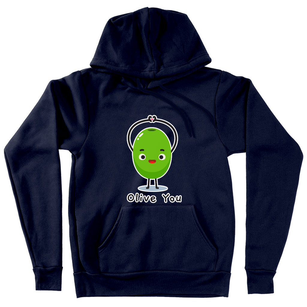 Olive You Hooded Sweatshirt - Heart Print Hoodie - Graphic Hoodie Clothing Hoodies Color : Black|Navy|White