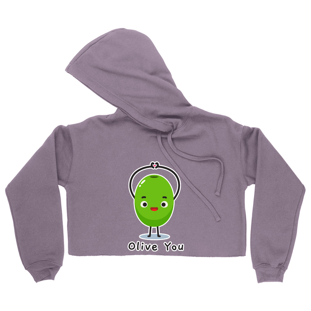 Olive You Women’s Cropped Hoodie – Heart Print Cropped Hoodie – Graphic Hooded Sweatshirt