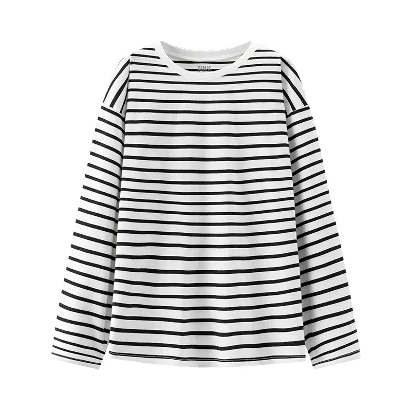 Designed with a high-quality cotton blend, this T-shirt offers a soft, skin-friendly touch that feels gentle against your skin. The breathable fabric ensures you stay cool and comfortable even on warmer spring days. Its long sleeves add a cozy feel, making it ideal for layering under jackets or wearing alone when the weather is mild. The oversized fit drapes beautifully, giving you a stylish yet effortless look.