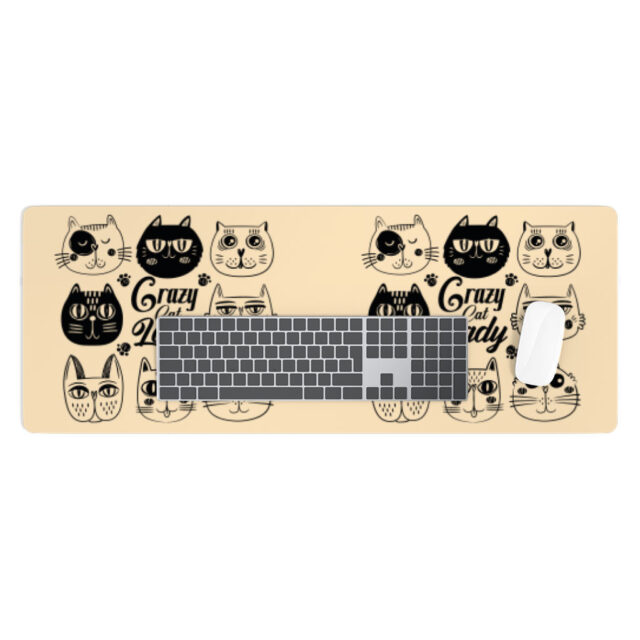 Peace Love and Cats Desk Mat – Animal Print Desk Pad – Printed Laptop Desk Mat