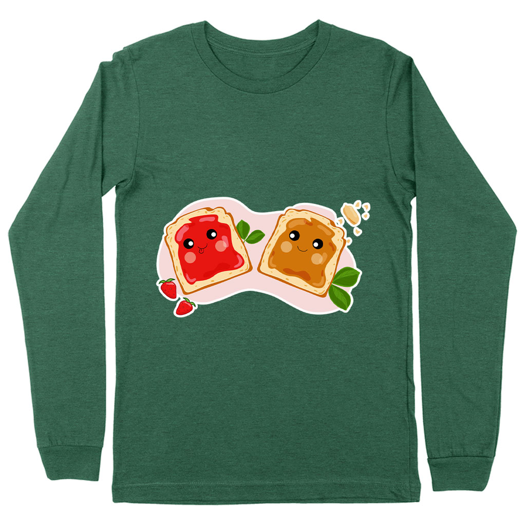Peanut Butter and Jelly Long Sleeve T-Shirt - Cute T-Shirt - Printed Long Sleeve Tee Shirt Clothing T-Shirts Color : Black|Heather Forest|White