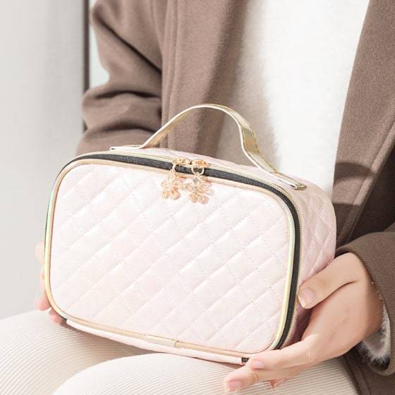 SUPER! I’m happy to add this pretty cosmetic bag to my collection. The bag is even better than I expected – cute design, sturdy zipper, super functional. Despite being light color it doesn’t get dirty easily even if it does - it’s very easy to wipe off. Definitely would recommend especially for the price!