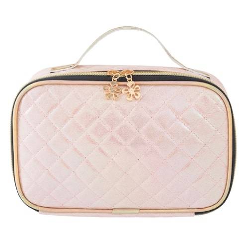 I was a little anxious about the bag quality but it’s by far the best makeup bag I've ever used! It’s great quality, perfect size for regular use as well as for travelling. Beautiful pink color and durable material. It perfectly fits all my girl stuff and has convenient slots for brushes. It’s worth the money. I definitely recommend it.