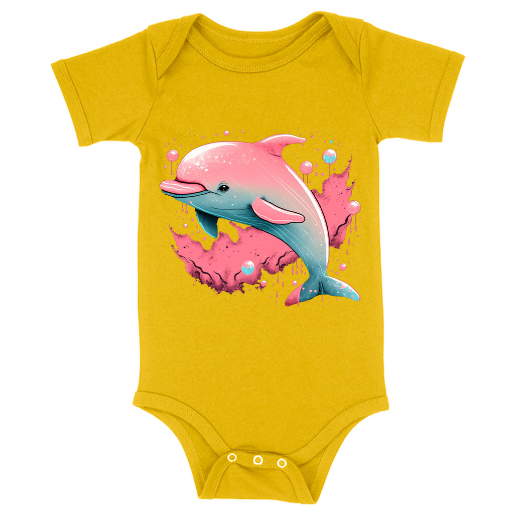 Pink Dolphin Baby Jersey Onesie – Cartoon Baby Onesie – Cute Baby One-Piece