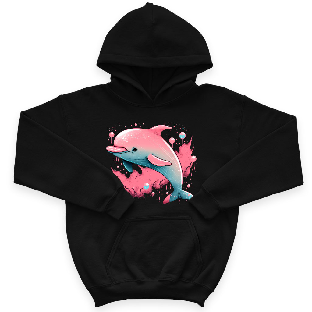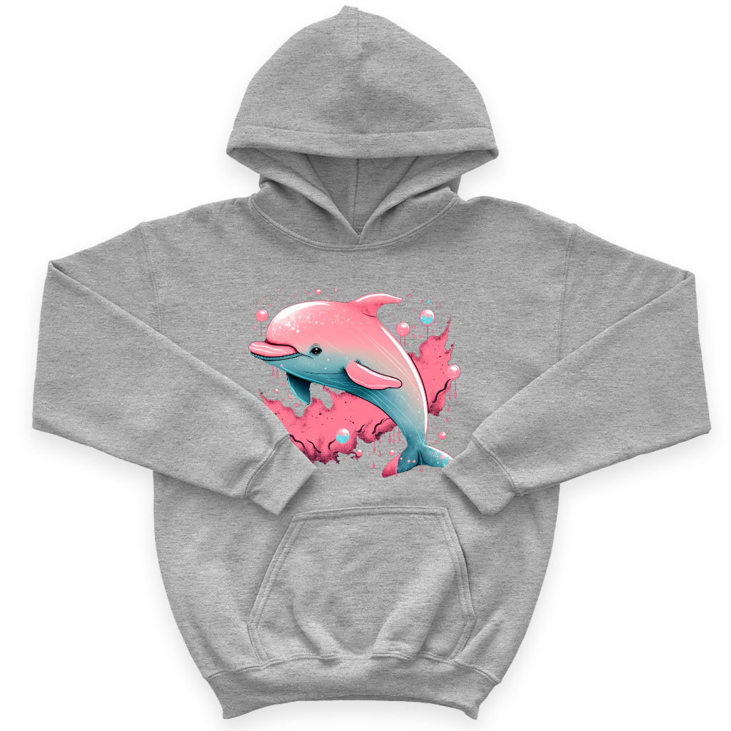 Pink Dolphin Kids’ Sponge Fleece Hoodie – Cartoon Kids’ Hoodie – Cute Hoodie for Kids