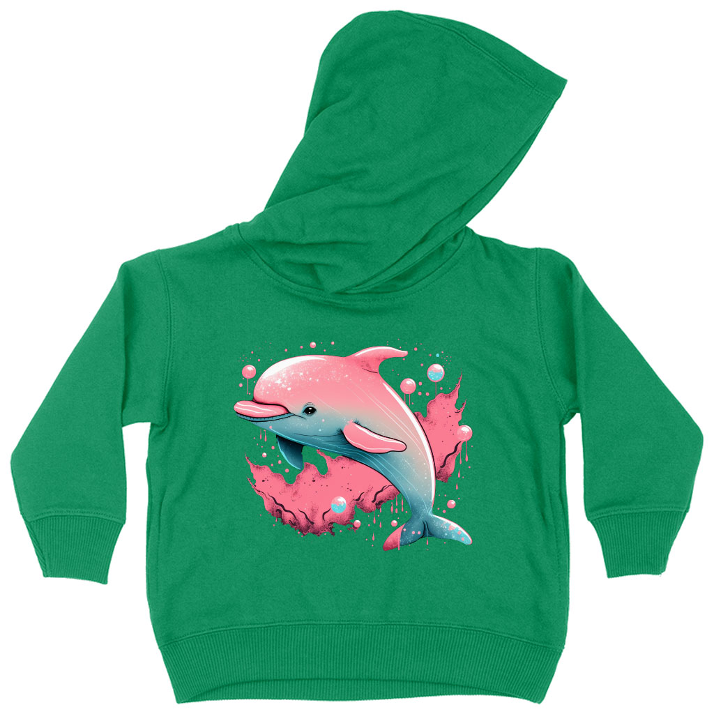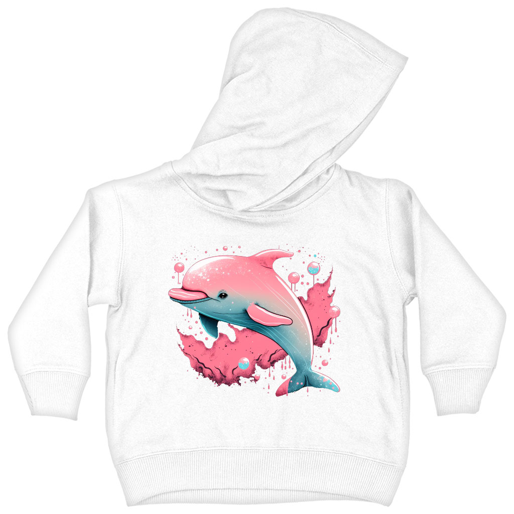 Pink Dolphin Toddler Hoodie – Cartoon Toddler Hooded Sweatshirt – Cute Kids’ Hoodie
