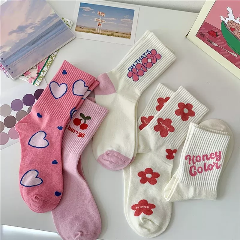 Step into a world of comfort and style with our Pink Flower Cotton Mid-Tube Socks. Perfectly blending the sweet Harajuku Lolita style with the practicality needed for daily wear and outdoor activities, these socks are your go-to accessory for adding a touch of charm to any outfit. Whether you’re lounging at home, stepping out for a casual outing, or engaging in sports, these socks promise both style and functionality.