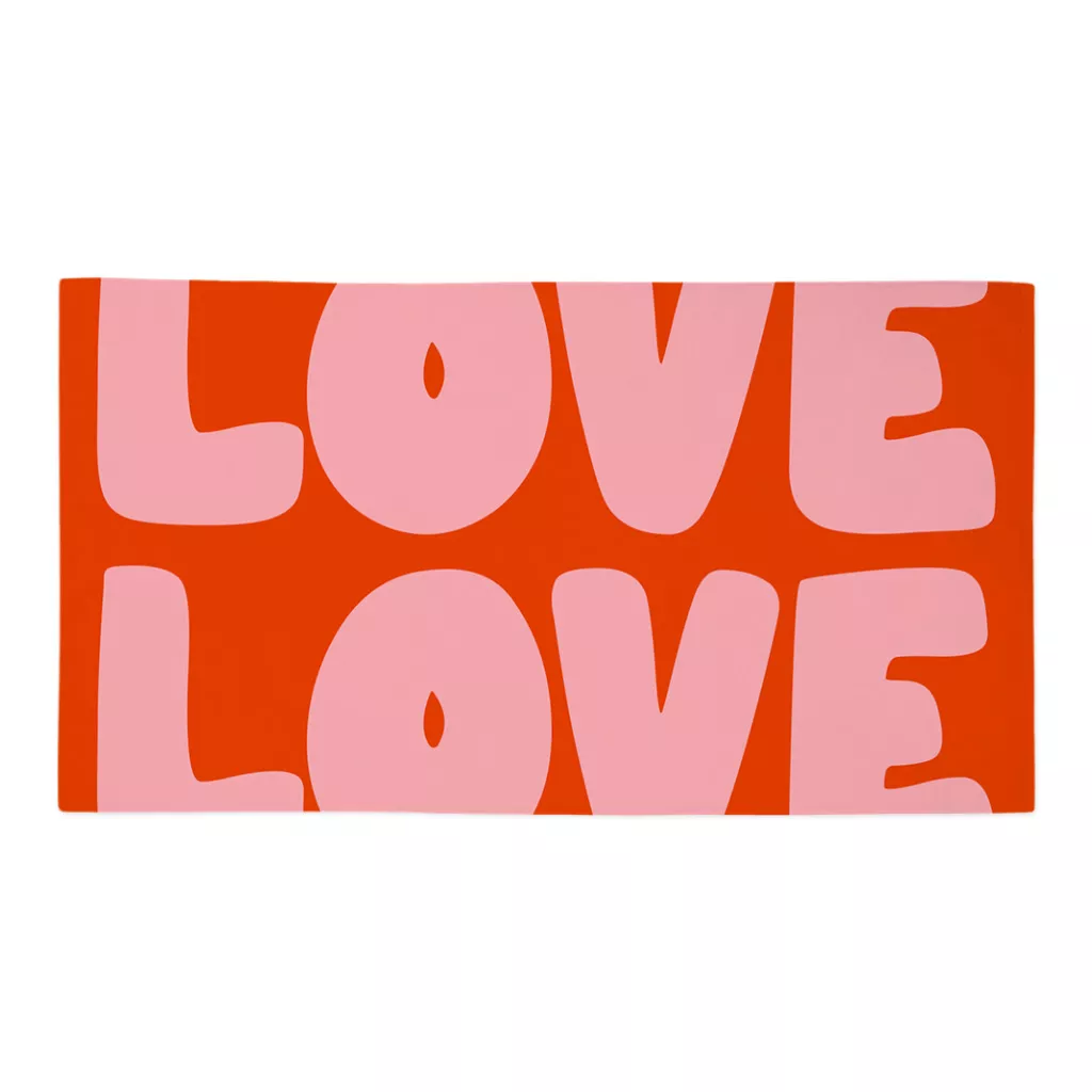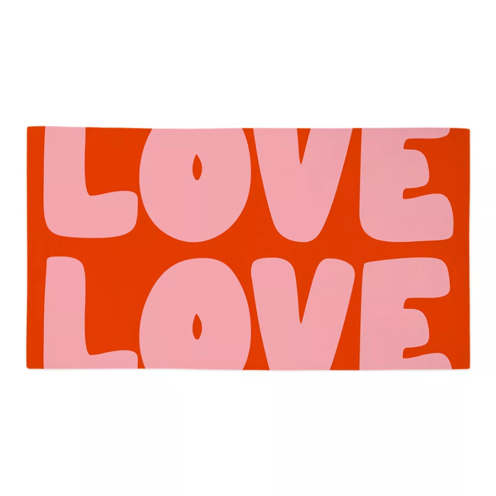 Pink Love Bath Spa Towel – Cute Coquette Polycotton Towel – Retro Typography Gift Towel