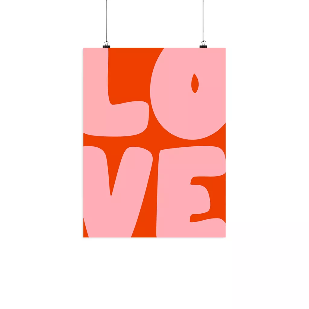 Pink Love Matte Poster – Retro Typography Wall Art Print – Cute Coquette Home Decor