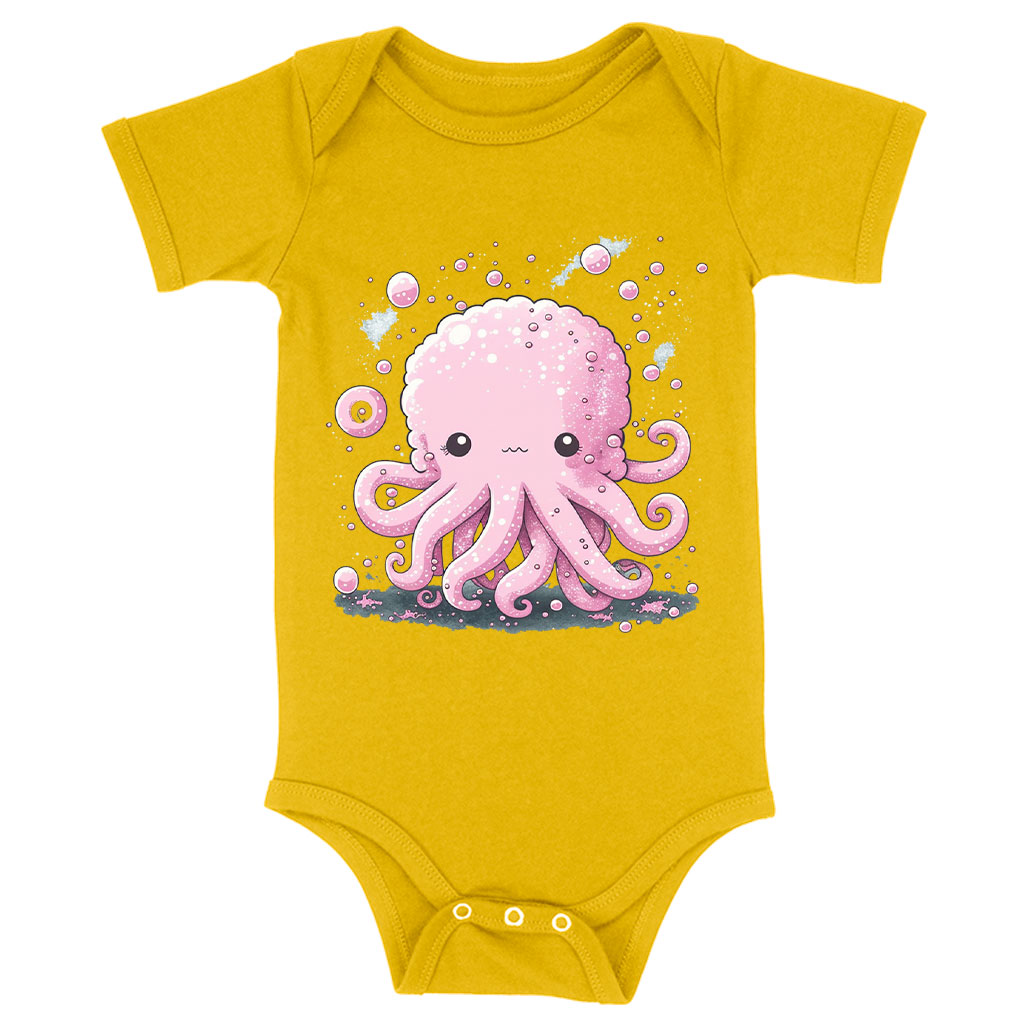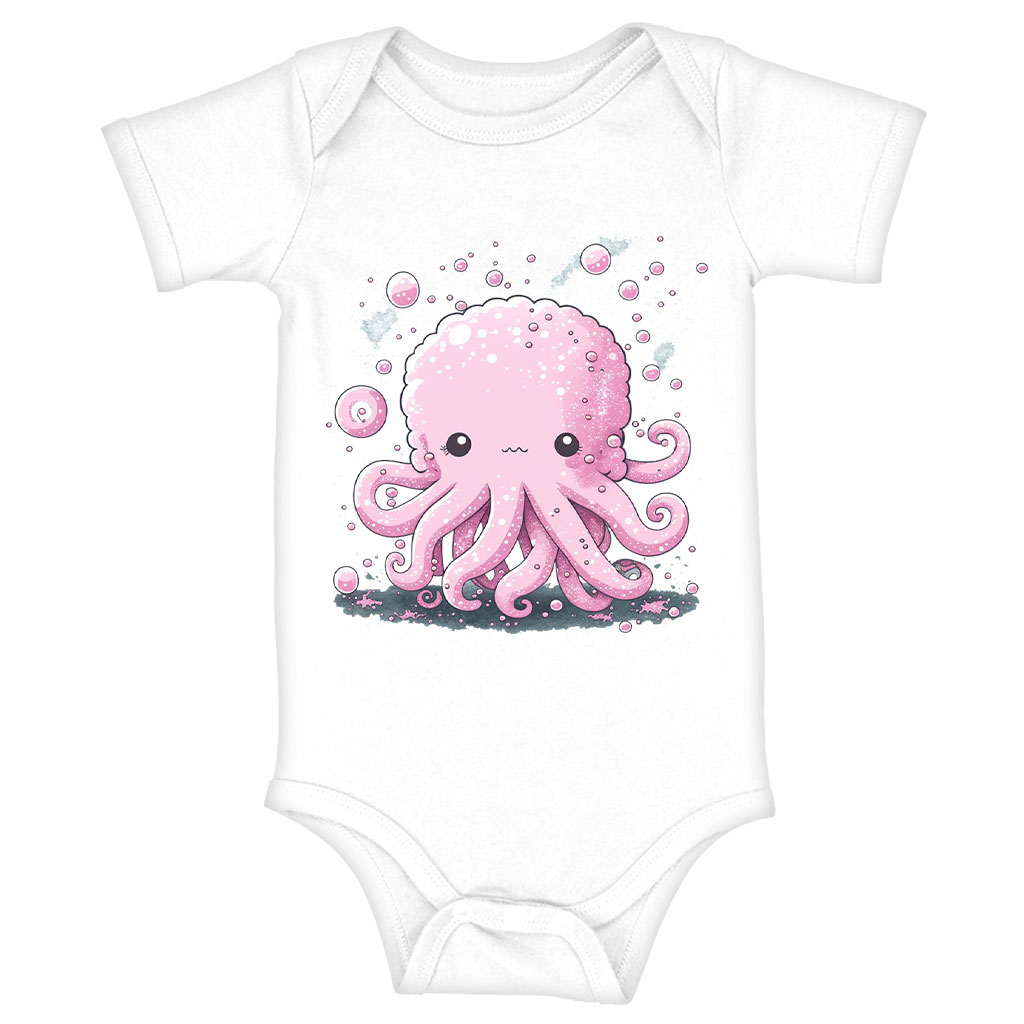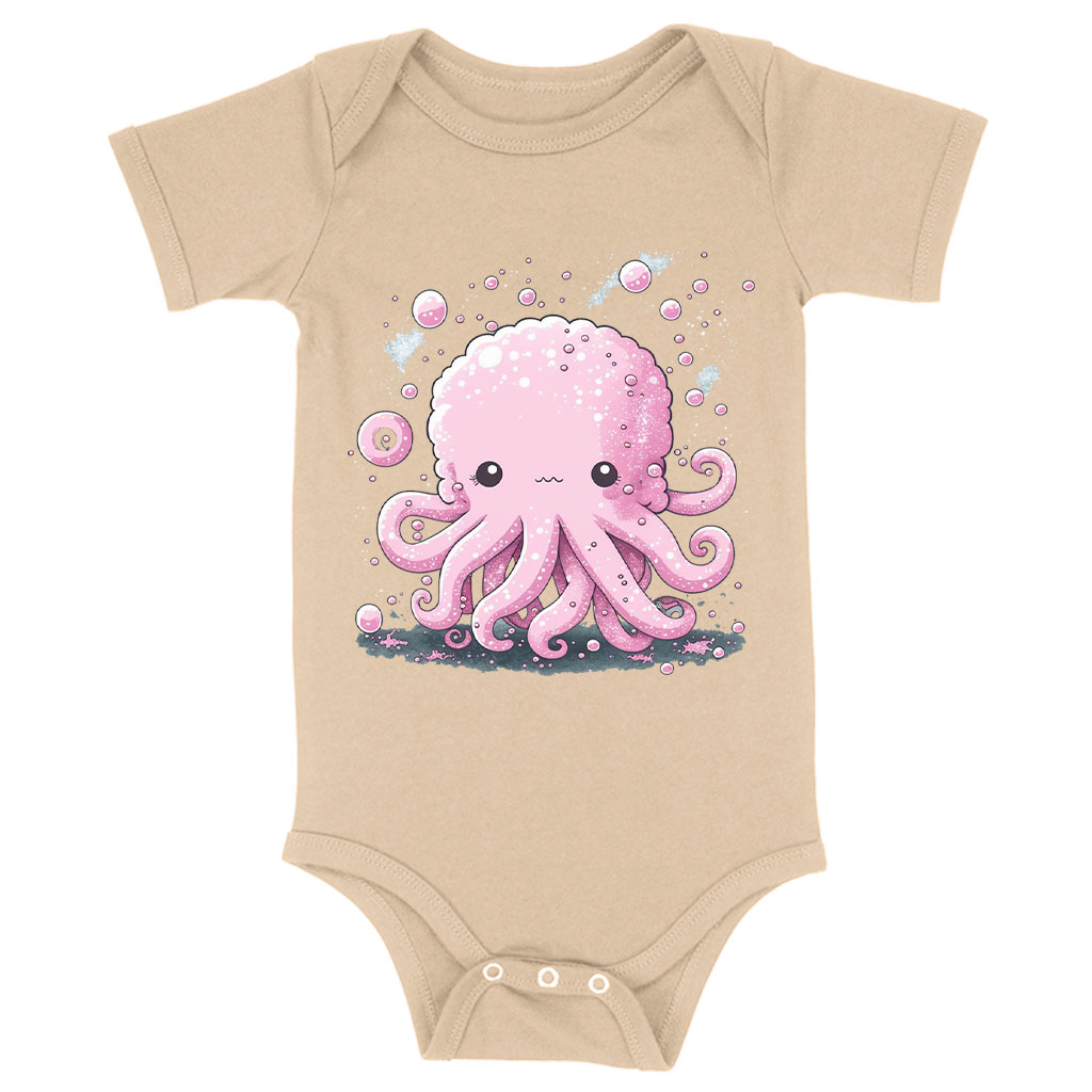 Pink Octopus Baby Jersey Onesie – Cute Kawaii Baby Onesie – Printed Baby One-Piece