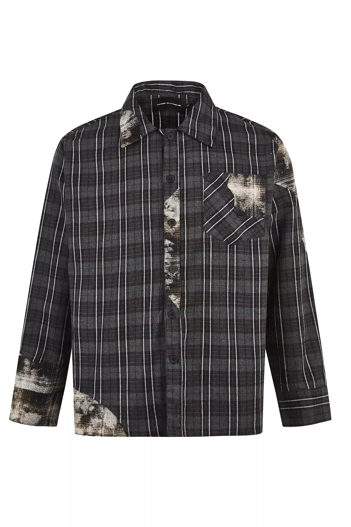 Plaid Distressed Stitching Woolen Shirt – Hip Hop Casual Style