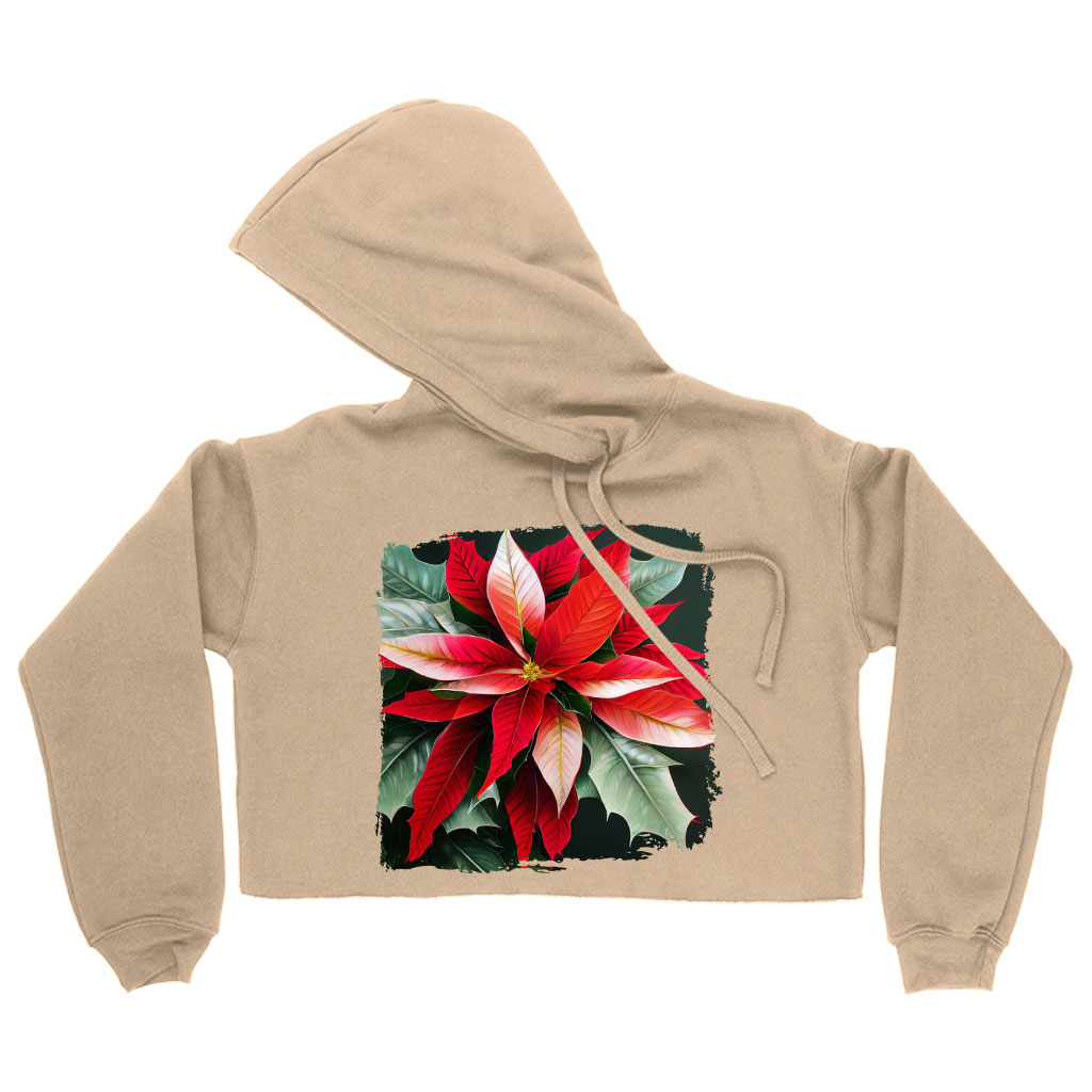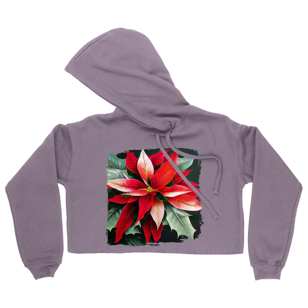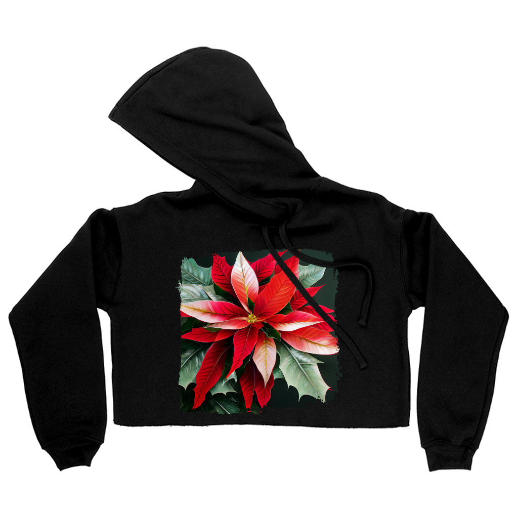 Plant Print Women’s Cropped Hoodie – Poinsettia Cropped Hoodie – Plant Hooded Sweatshirt