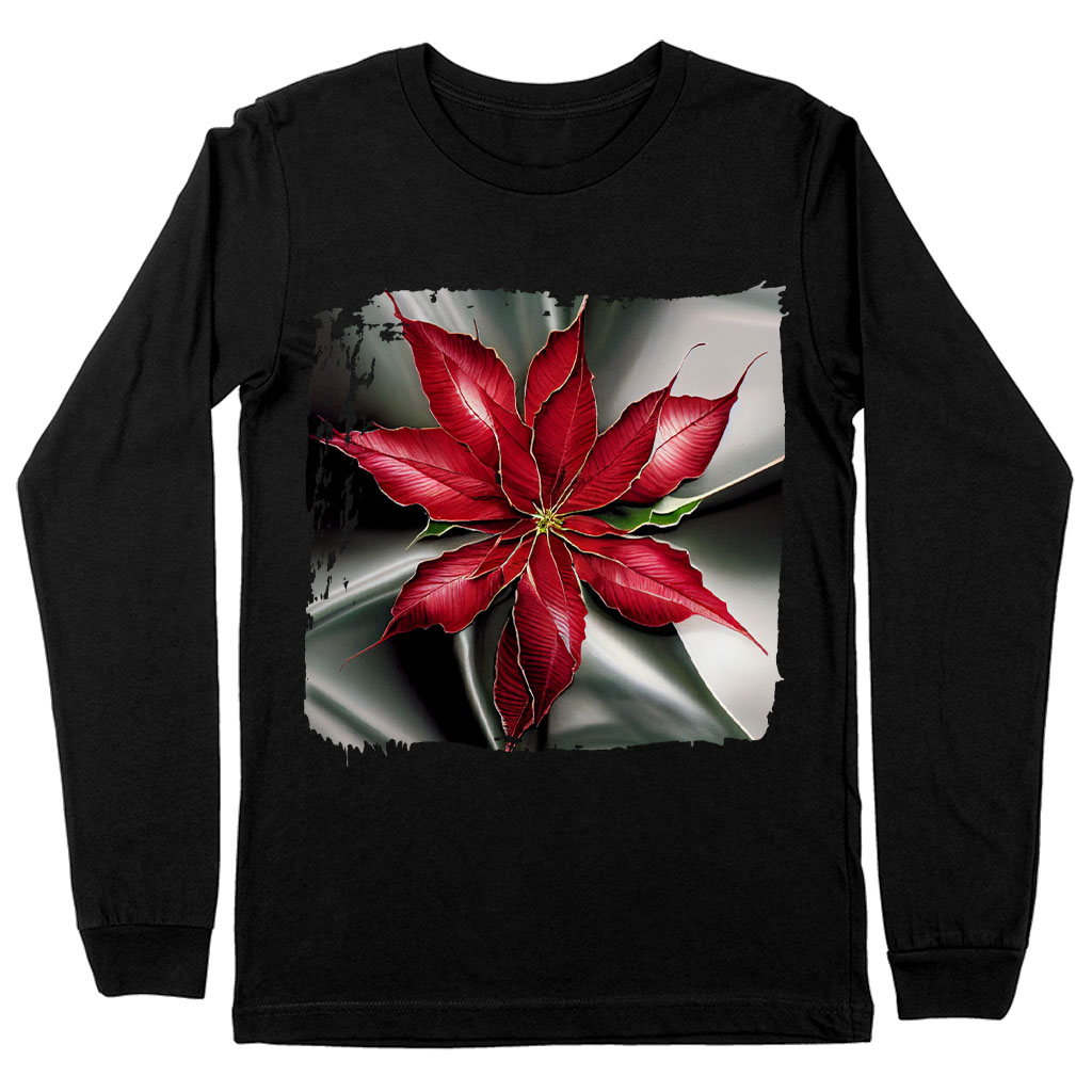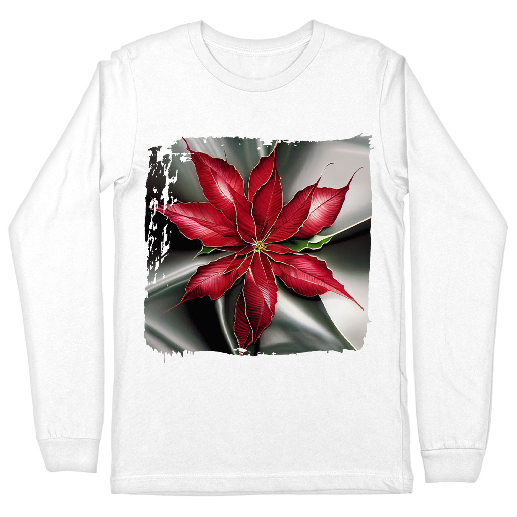 Poinsettia Christmas Long Sleeve T-Shirt – Art T-Shirt – Graphic Long Sleeve Tee