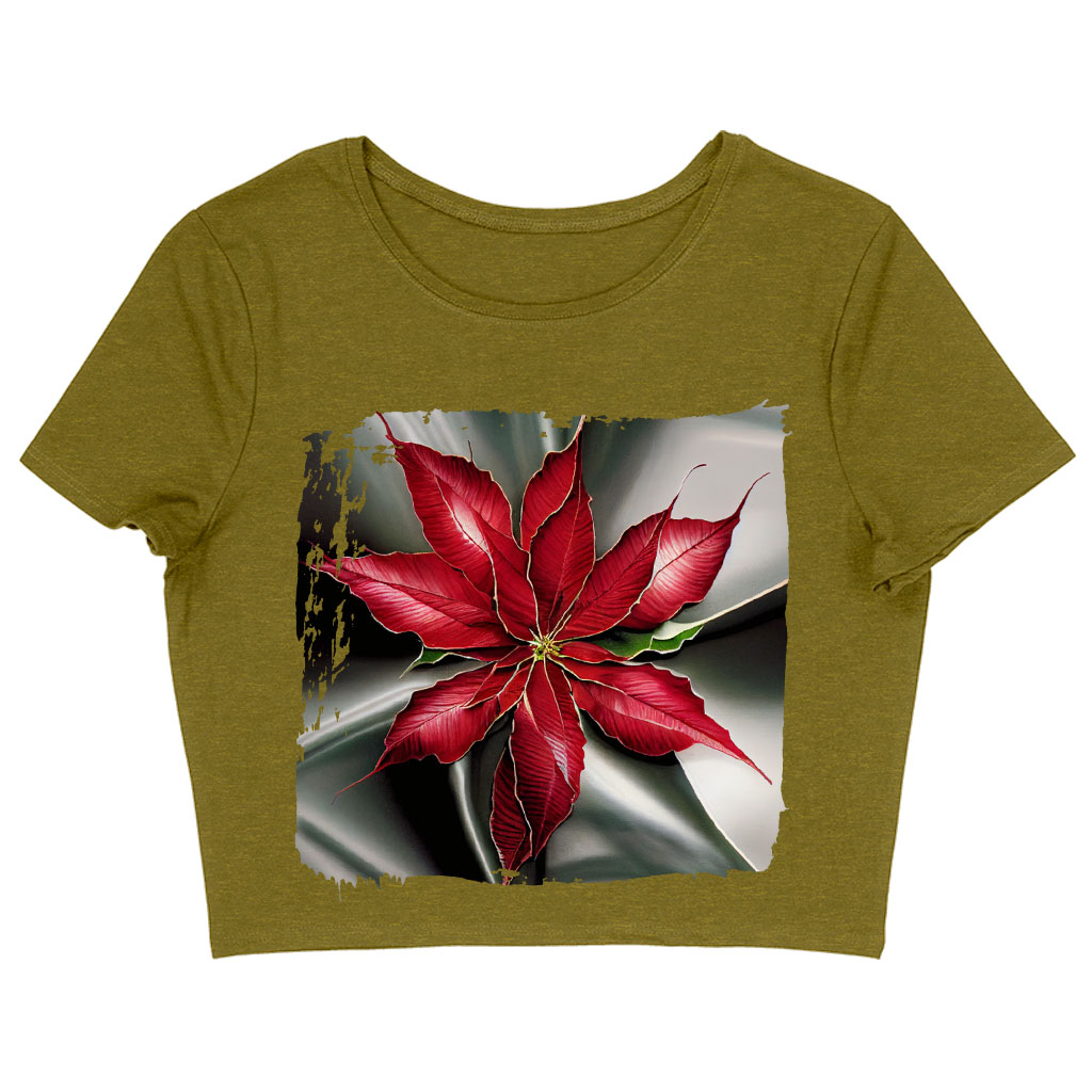 Poinsettia Christmas Women’s Cropped T-Shirt – Art Crop Top – Graphic Cropped Tee