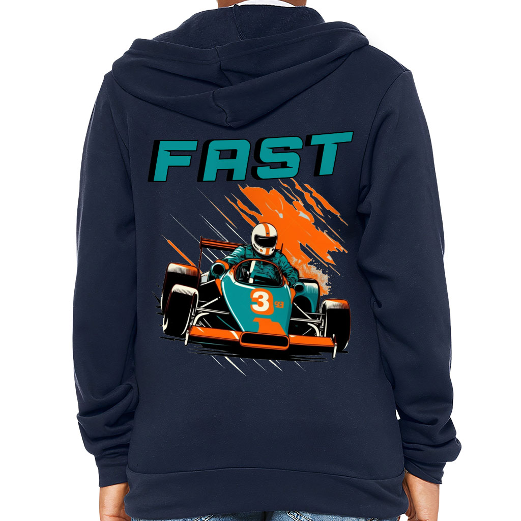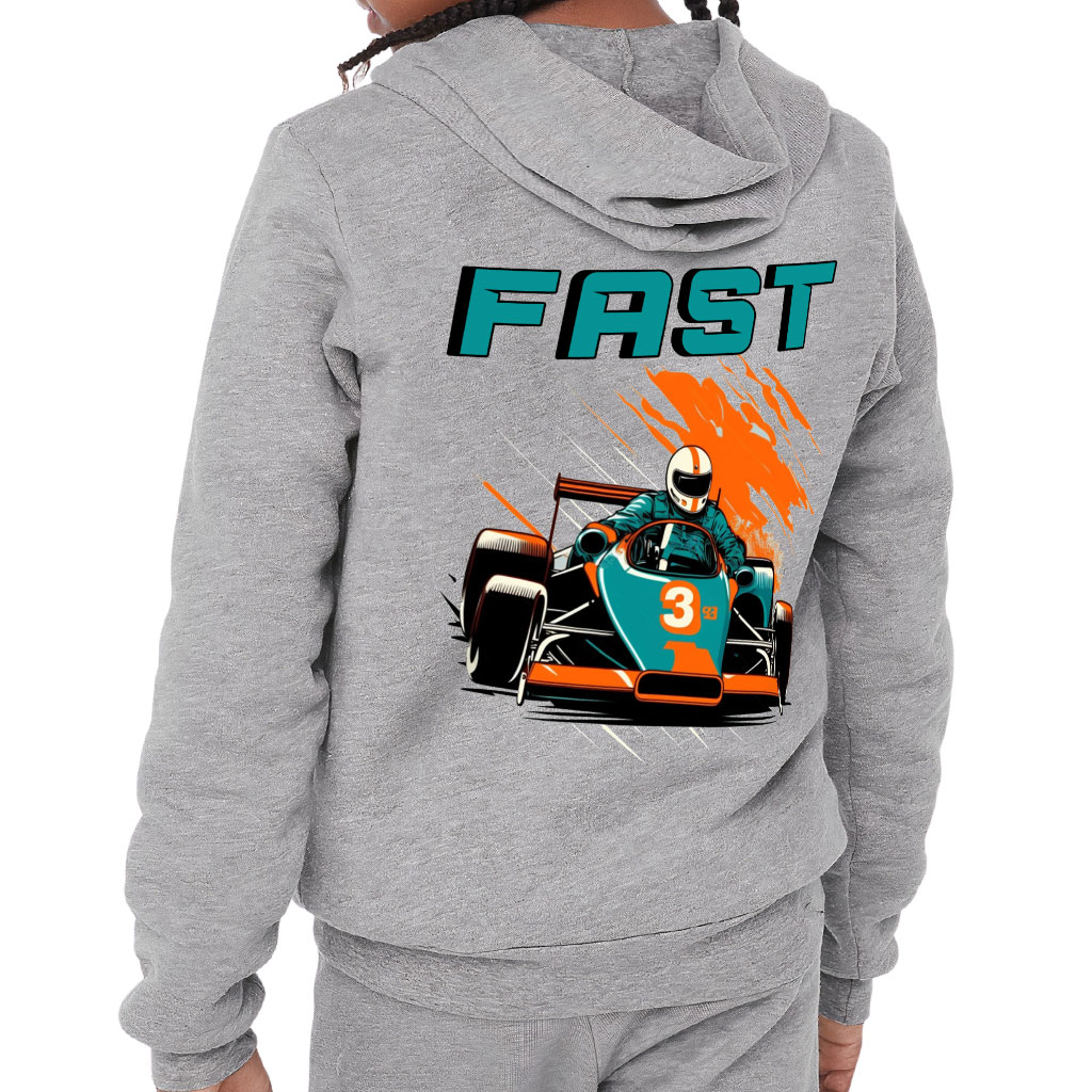 Racing Car Kids’ Full-Zip Hoodie – Fast Hooded Sweatshirt – Cool Graphic Kids’ Hoodie
