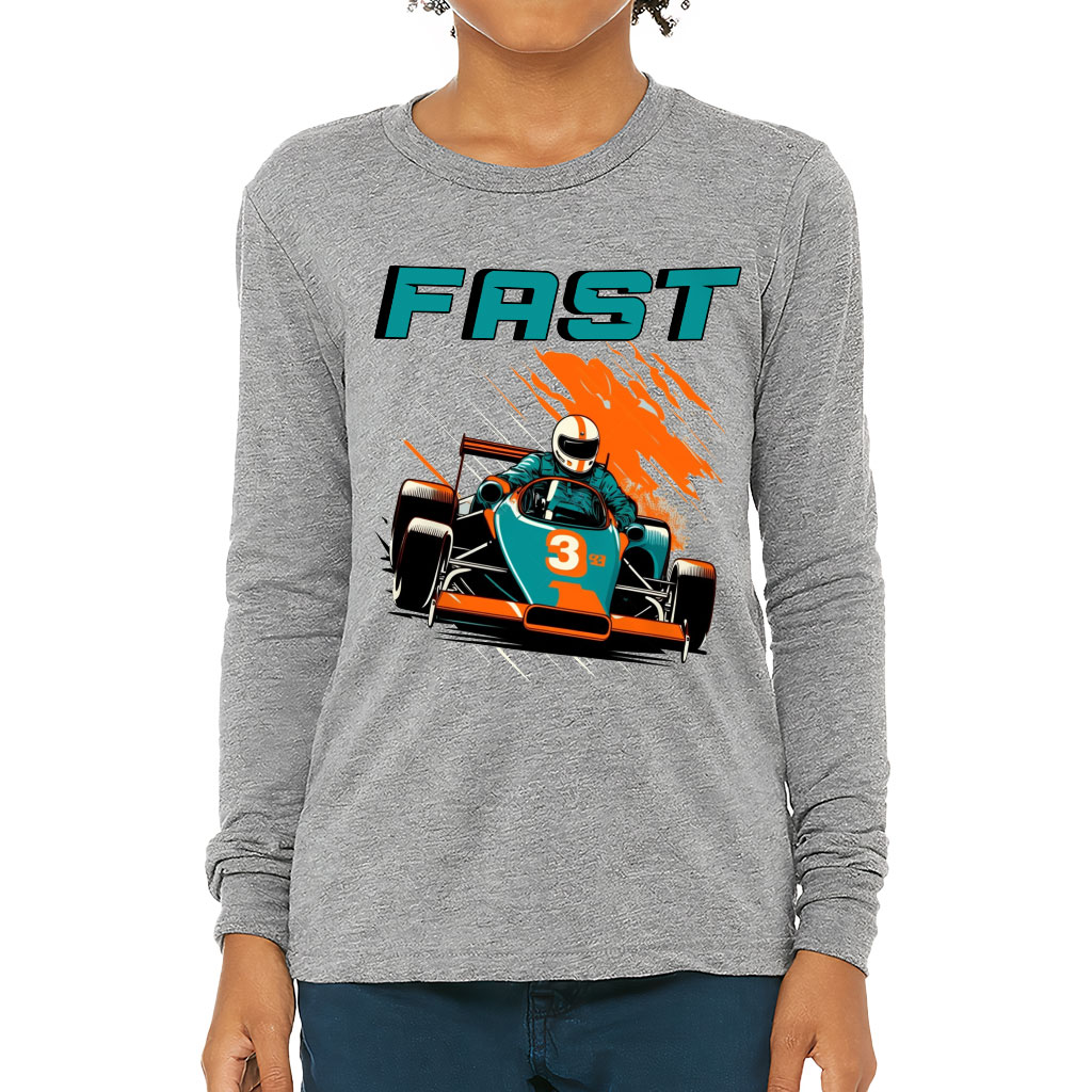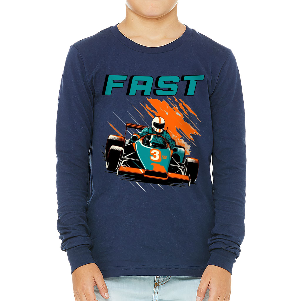 Racing Car Kids’ Long Sleeve T-Shirt – Fast T-Shirt – Cool Graphic Long Sleeve Tee