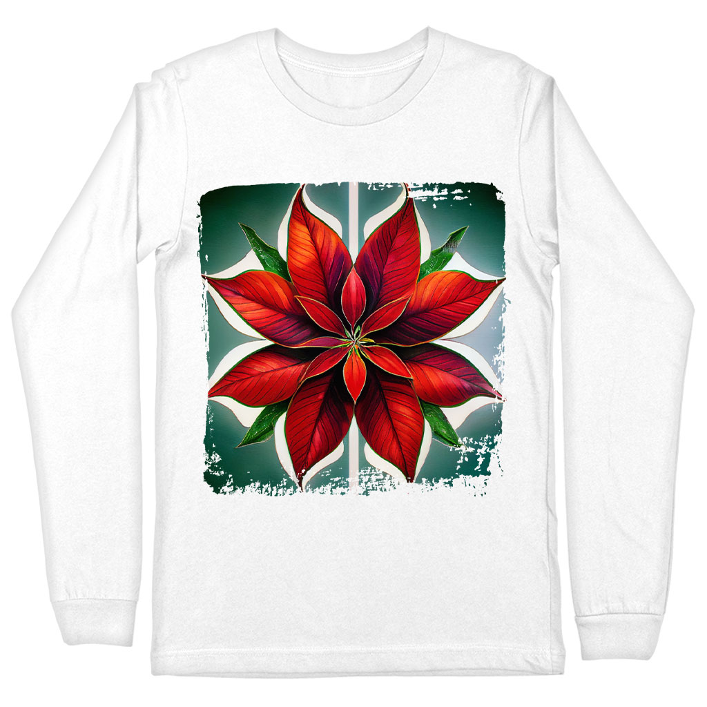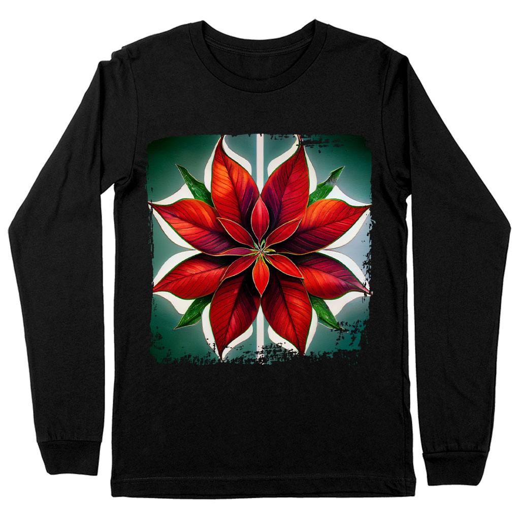 Red Flower Long Sleeve T-Shirt – Plant T-Shirt – Poinsettia Long Sleeve Tee