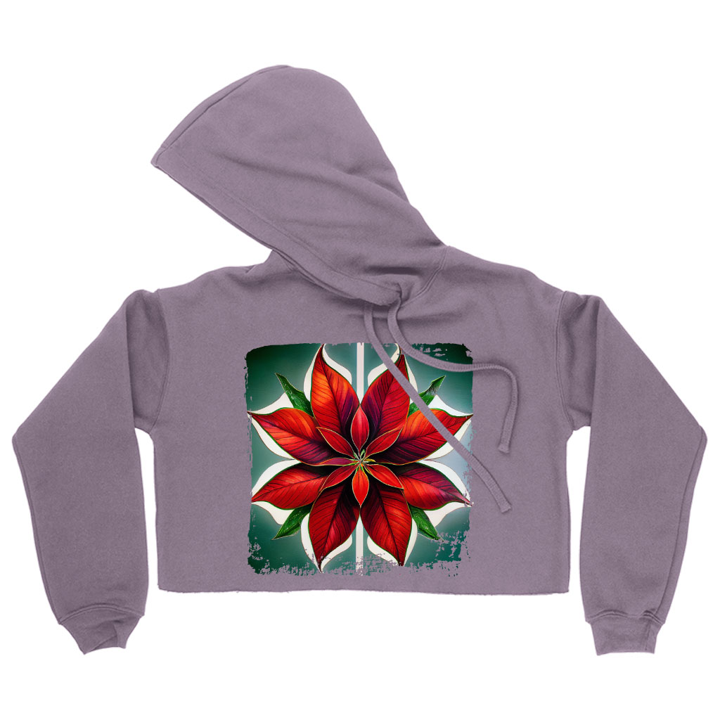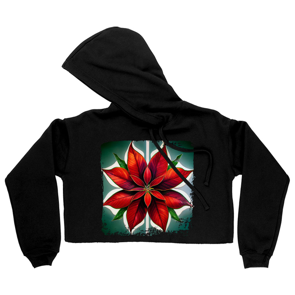 Red Flower Women’s Cropped Hoodie – Plant Cropped Hoodie – Poinsettia Hooded Sweatshirt