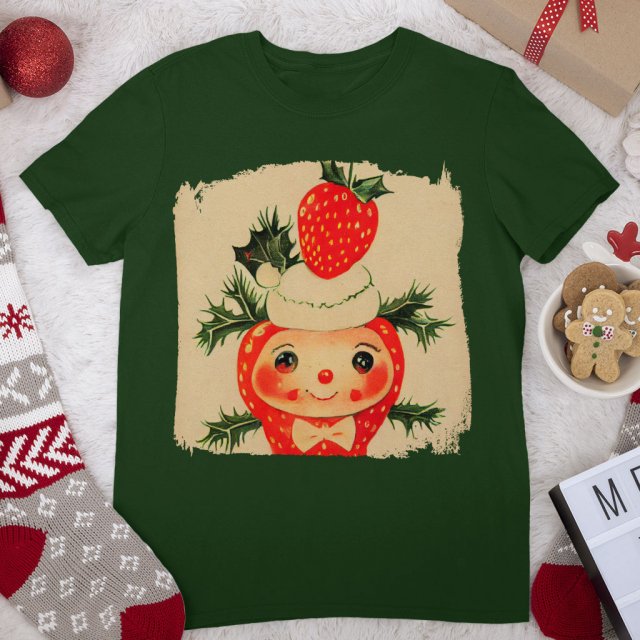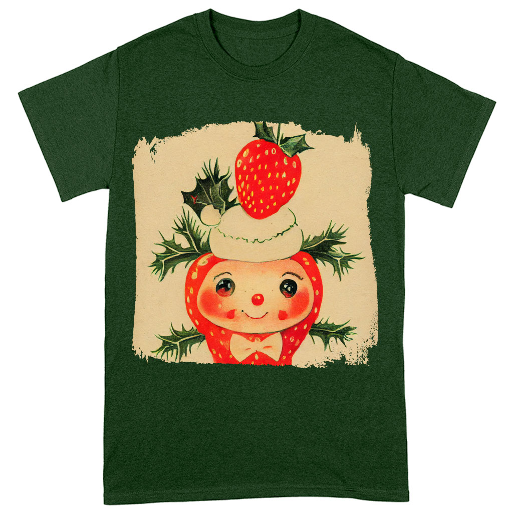 Red Strawberry Heavy Cotton T-Shirt - Cute Strawberry Tee Shirt - Best Design T-Shirt Clothing T-Shirts Color : Black|Forest Green|White