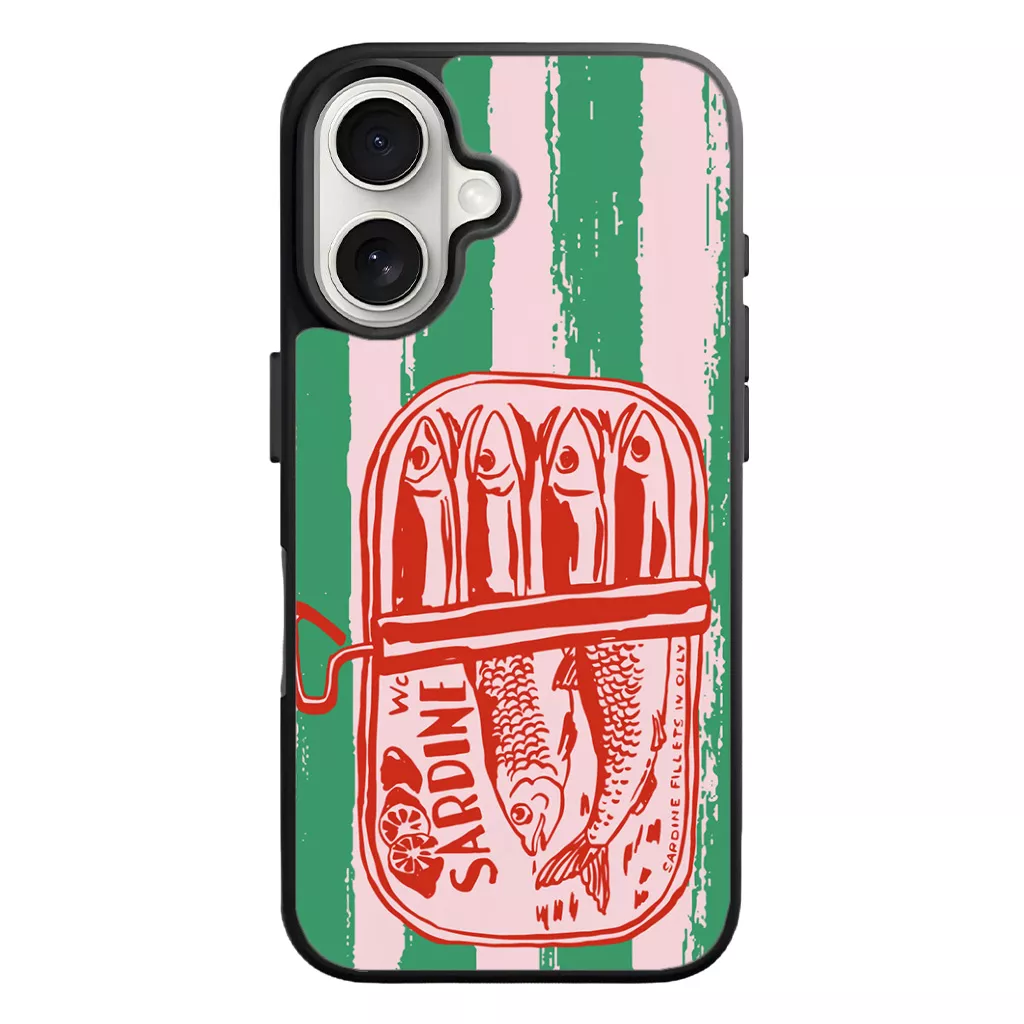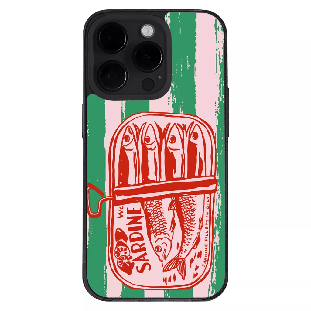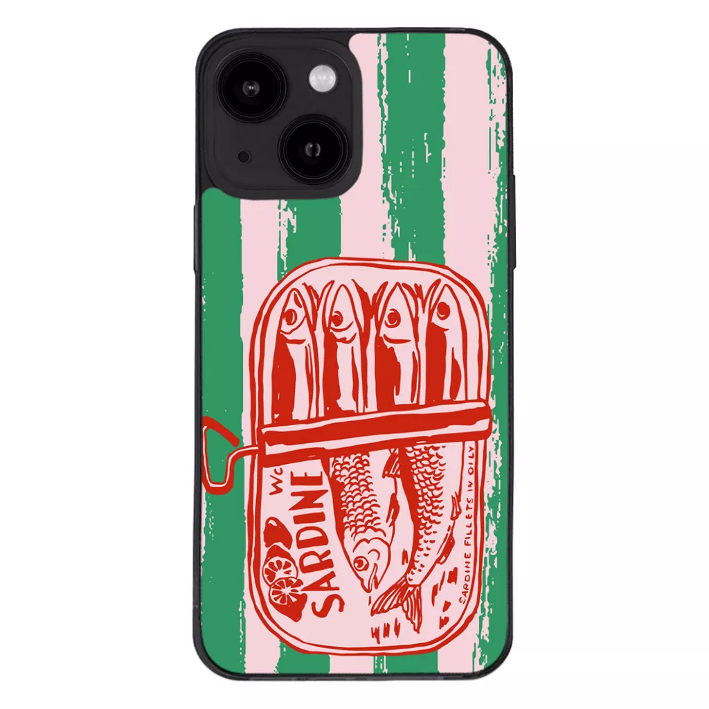 Sardines Art iPhone 16/15/14/13 Case – Fish Print Phone Case for iPhone – Vintage Hand Drawn Protective Phone Case